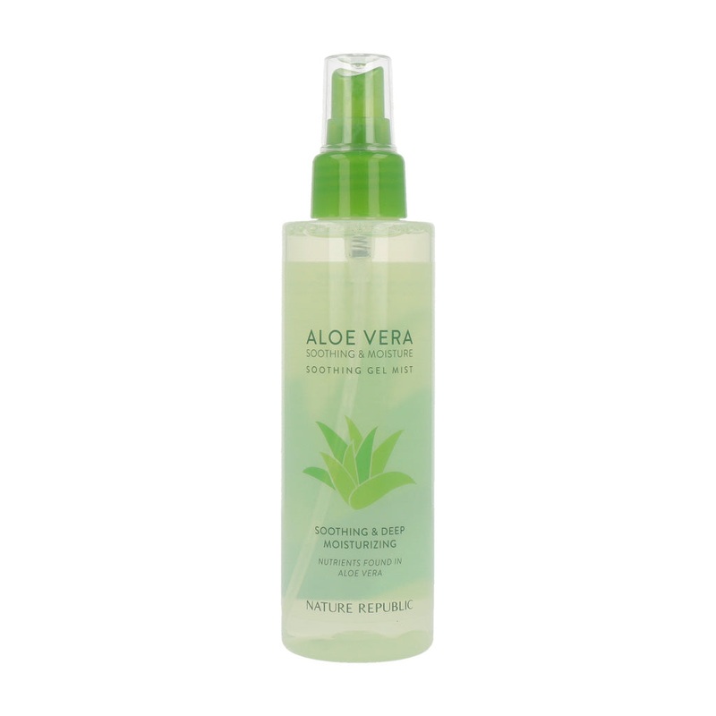 NATURE REPUBLIC Soothing & Moisture Aloe Vera 92% Soothing Gel Mist 150mlFeaturesThis is a gel-type mist made with California Aloe.Aloe Leaf Juice deeply hydrates the skin and protects the skin from External Stimuli.How to useWhenever you feel dry, spray o