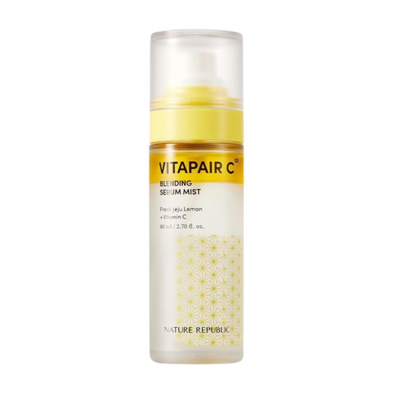 NATURE REPUBLIC Vitapair C Blending Serum Mist 80mlDescriptionThis serum mist contains 3 kinds of vitamin that helps brighten the skin and promote glowing skin.The top layer of plant-derived oil and the bottom layer of vitamin essential water deliver moist