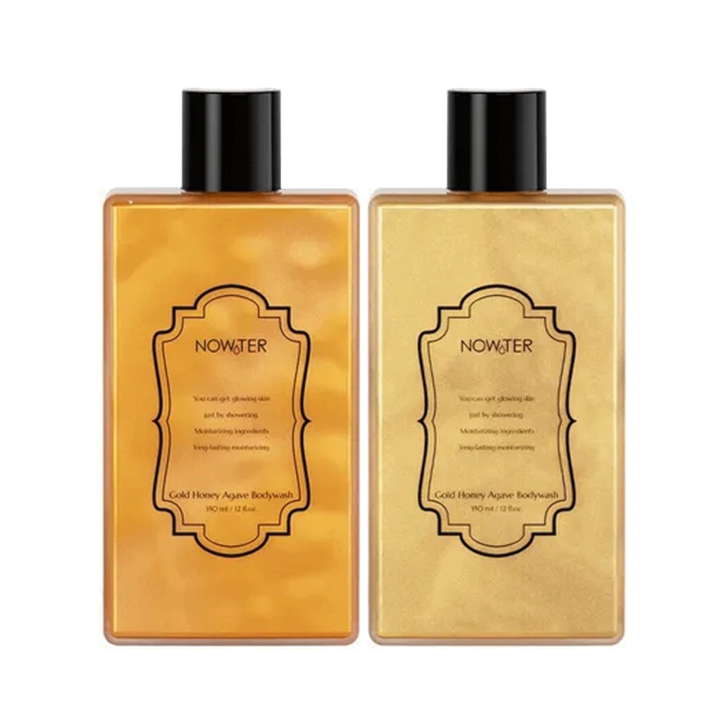 NOWATER Gold Honey Agave Bodywash 350ml - 2 TypesDescriptionThis bodywash helps removing body residues to reveal a glowing skin.Honey Agave Extract and Olive Oil retain moisture and nutriate the body.Remove dead skin cells with AHA ingredients and improve