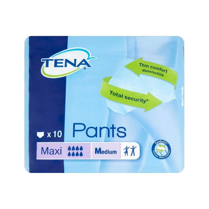 Tena Pants Maxi are disposable, pull-on incontinence pants designed for moderate to heavy bladder leakage. They offer triple protection from leaks, odour and moisture, with a unique Dual Absorption Zone for optimum dryness and protection.