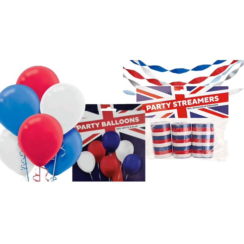 Light up any celebration with our vibrant 12-Pack of Red, White & Blue Party Balloons and 3 pack of streamers! Perfect for birthdays, street parties, national events, proms, bake-offs, or summer fairs, these 30cm latex balloons bring joy and colour to every occasion. Crafted for health-conscious party planners, these durable, easy-to-inflate balloons create a festive atmosphere without compromising on quality. Whether youre hosting a lively outdoor bash or a cosy gathering, these eye-catching balloons elevate the mood and spread smiles. Free delivery on all ordersshop now on our Shopify store to make your event unforgettable!
