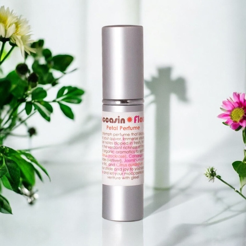 Moccasin Floweris a Skippy Wood Nymph perfume that blossoms a bouquet of adventure for your quiver.Immerse yourself in amber notes of fresh, fragrant earth as you muse upon the verdant richness of the natural world. While sweet, sensual blossoms sparkle wi