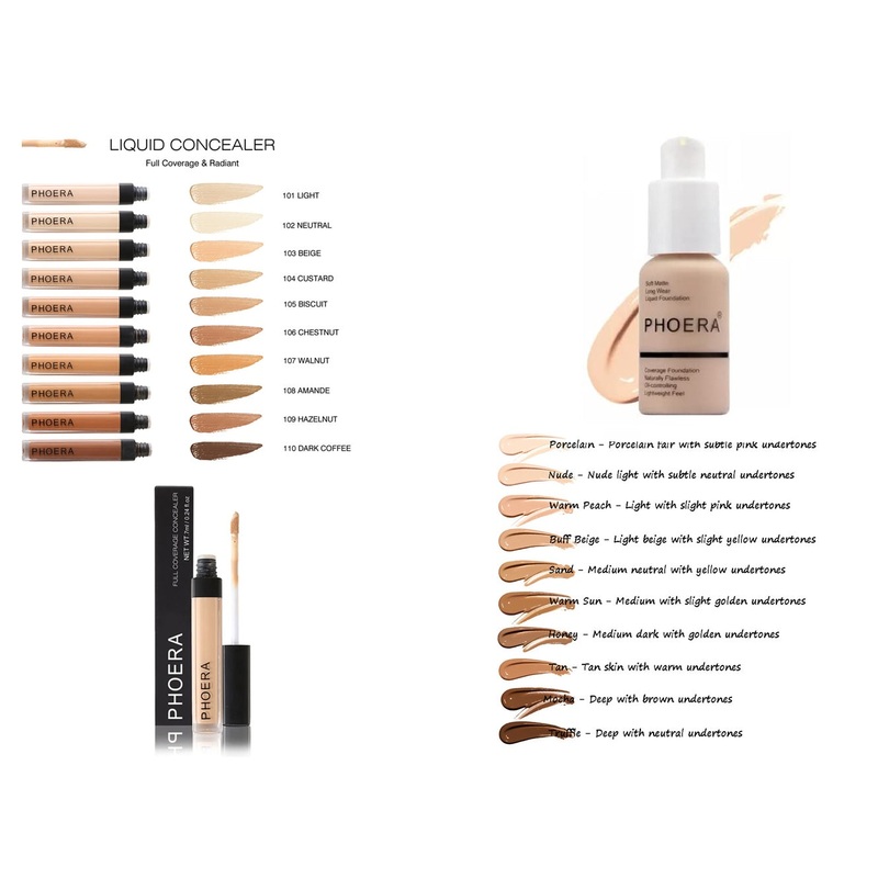 Phoera Make up Foundation and Concealer Duo- Compatible colours combined for a flawless finish- Choose 1, 2 or 3 Foundation and Conceler Duo'sPhoera Concealer;Silicone- and oil-free formulaAims to give full coverageLightweight, serum-like feelSoft matteSil