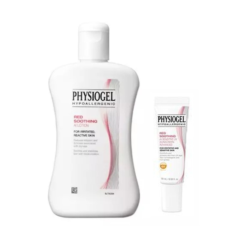 PHYSIOGEL Red Soothing AI Lotion (200ml) + Sunscreen (10ml) Limited Edition SetDescriptionA multitasking lotion powered by PHYSIOGELs advanced soothing, hydrating and barrier-strengthening formula. Clinically shown to strengthen and stabilize the skin barr