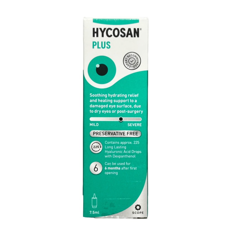 Soothing hydrating relief and healing support to a damaged eye surface, due to dry eyes or post-surgery