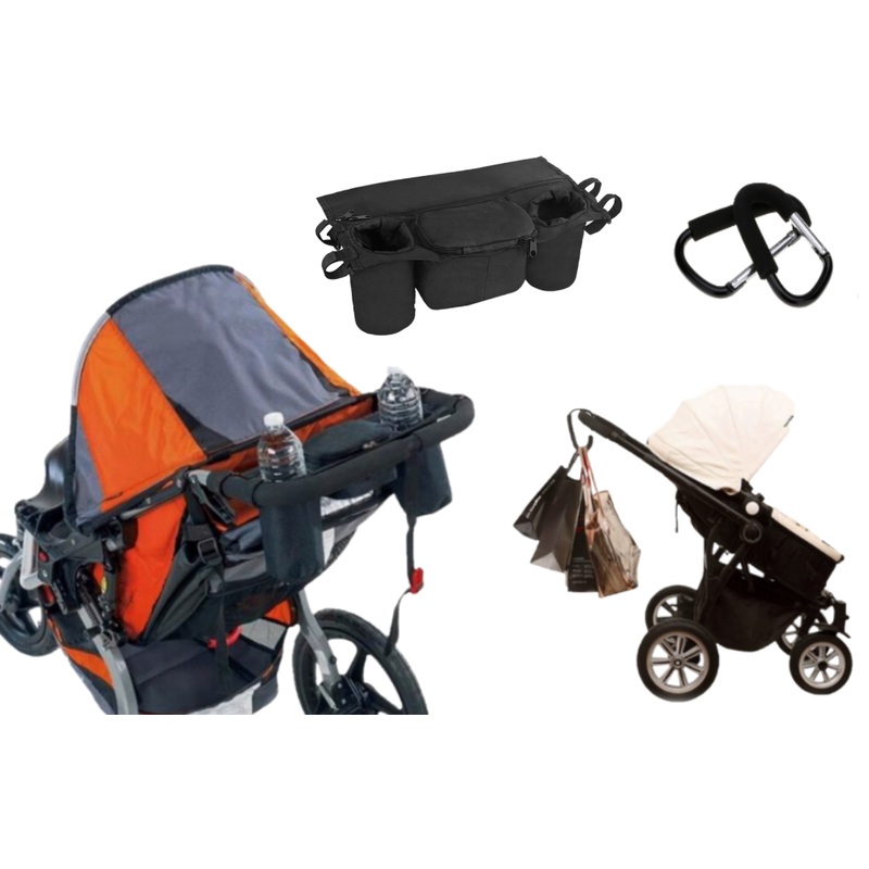 Pram Storage Bag & Optional Pram HookThe must have attachment for any parent. No more losing or dropping baby accessories or even water bottles.Includes:x2 Bottle Pocketsx2 Zip Up Storage Pockets.Optional Shopping Carry Clip.Colour:Black.Material:Nylon, Me
