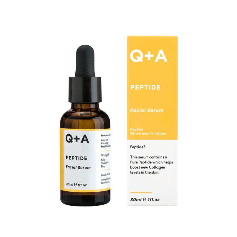 Peptides serve as building blocks for collagen, helping to keep your skin tight and youthful looking. Q+A Peptide Facial Serum has been formulated with a Pure Peptide to help boost collagen levels in a fast absorbing serum.
