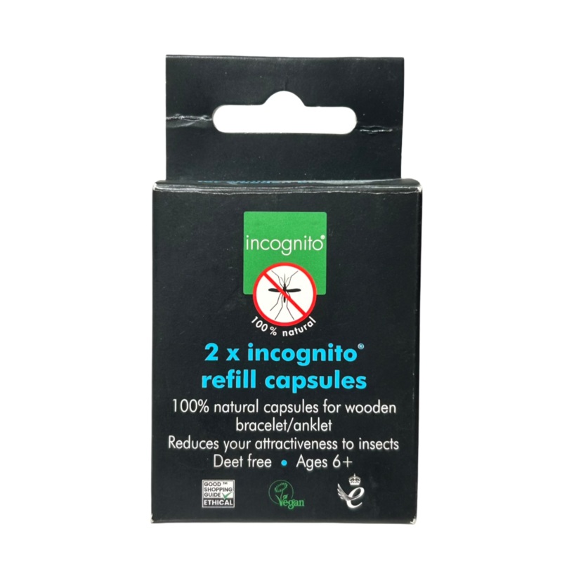 Two Refillable Insect Repellent Capsules for use in our Bracelet.Each capsule lasts up to 18 days (432 hours) and provides localised protection against mosquitoes, midges, horseflies and many other biting and stinging insects. Please keep tightly sealed in