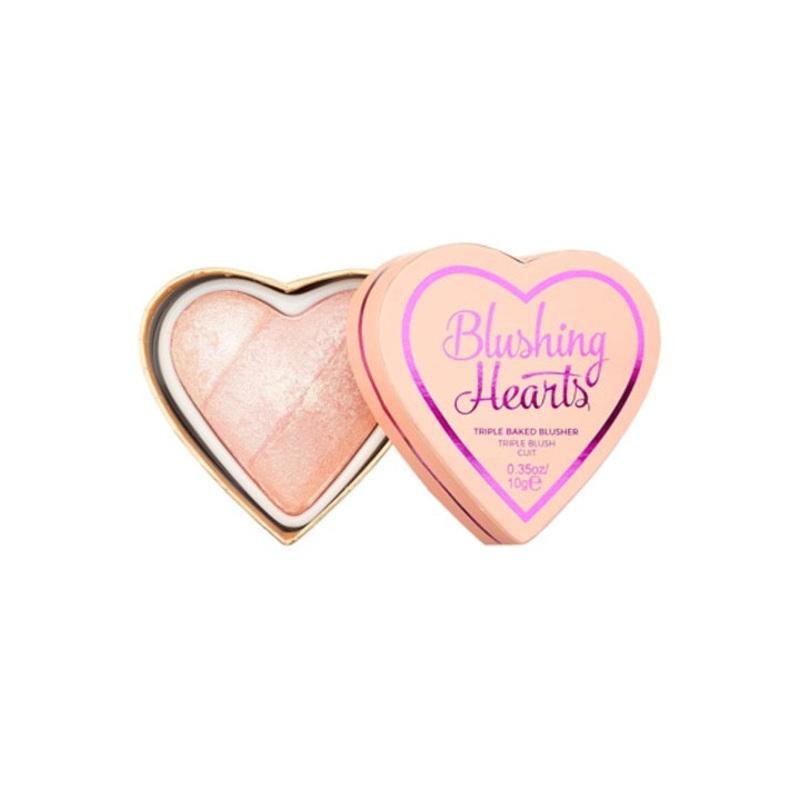 Revolution Triple Baked Blush Blushing Hearts Peachy Pink Kisses for a soft kiss of color. A long-lasting, high-pigmented formula matches your skin for a perfectly flushed look. Its lightweight and smooth texture ensures a natural, blendable finish that will last all day. Get a peachy pink kiss for a natural-looking glow.