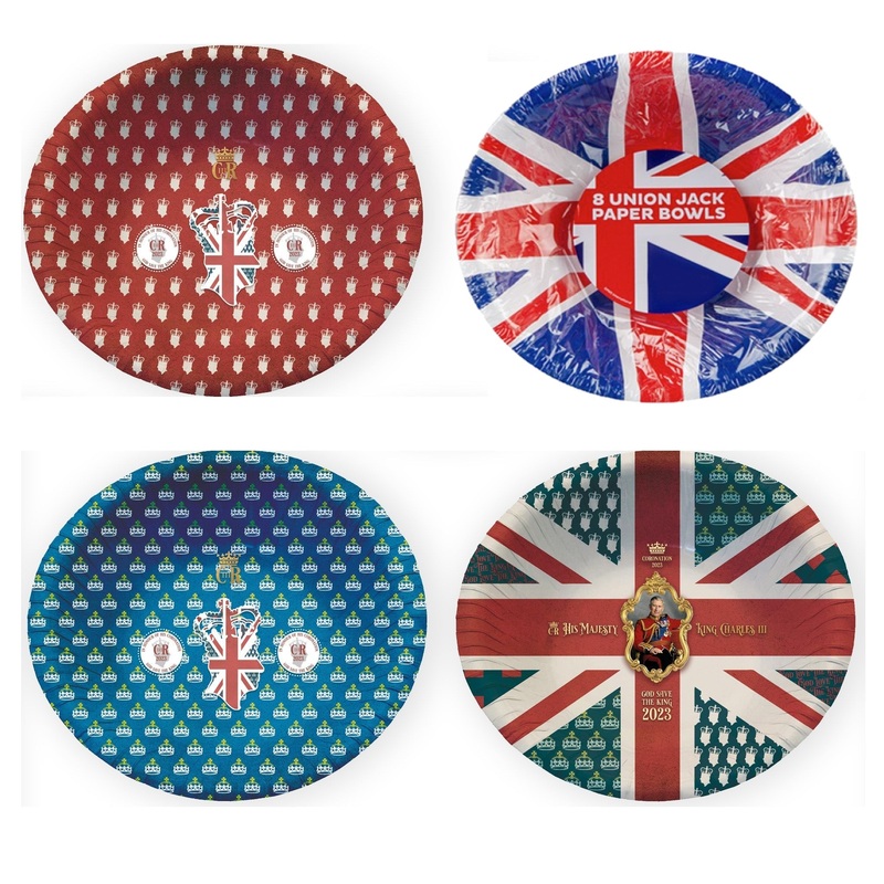 Clean up the scene quickly and conveniently during and after the party with these disposable Royal Coronation Blue, Red or Union Jack printed bowls measuring 24cm.