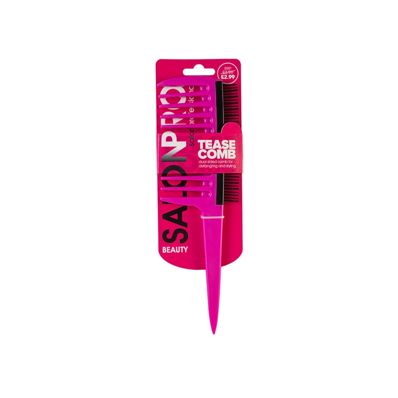 Elevate your styling game with SalonPro's Pink Tease Comb BEAU356. This professional-grade comb is designed to tease and add volume to your hair, creating a perfect, polished look. With its precise and sturdy teeth, it allows for precise styling without da