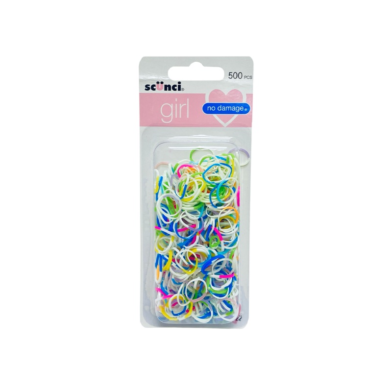 The Scunci 500 No Damage Snagless Bands are the perfect choice for your hairstyling needs. Designed with a snag-free band for all-day comfort, these bands wont damage your hair like other elastics. With 500 per pack, you'll never be without your perfect lo