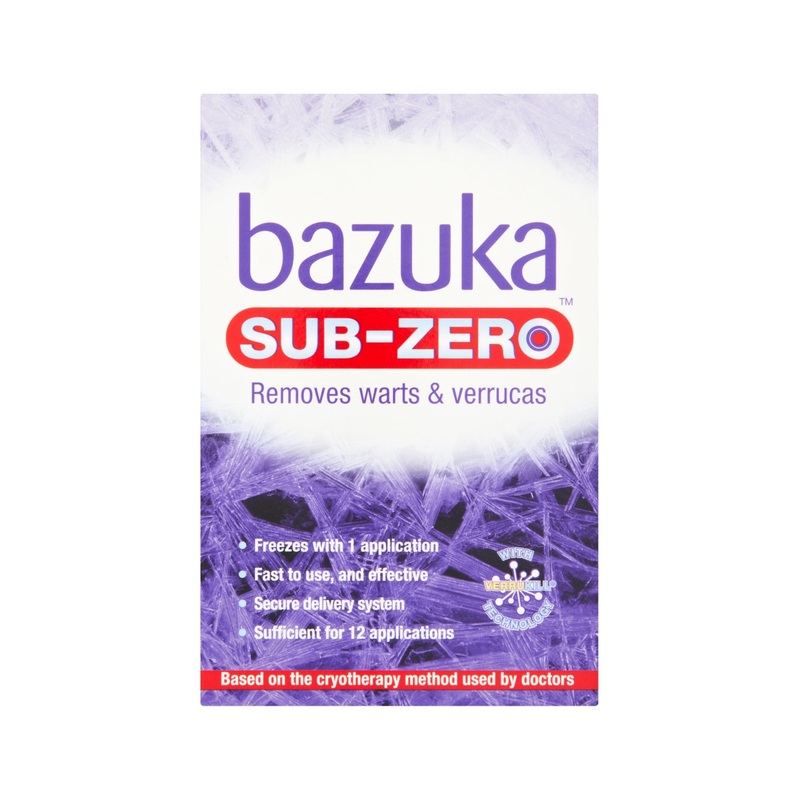 Bazuka Sub-Zero is a 'freezing' wart and verruca removal device based on the cryotherapy method used by doctors.Bazuka Sub-Zero is an effective freezing device for removing common warts and verrucas in the convenience of your own home. It works by quickly