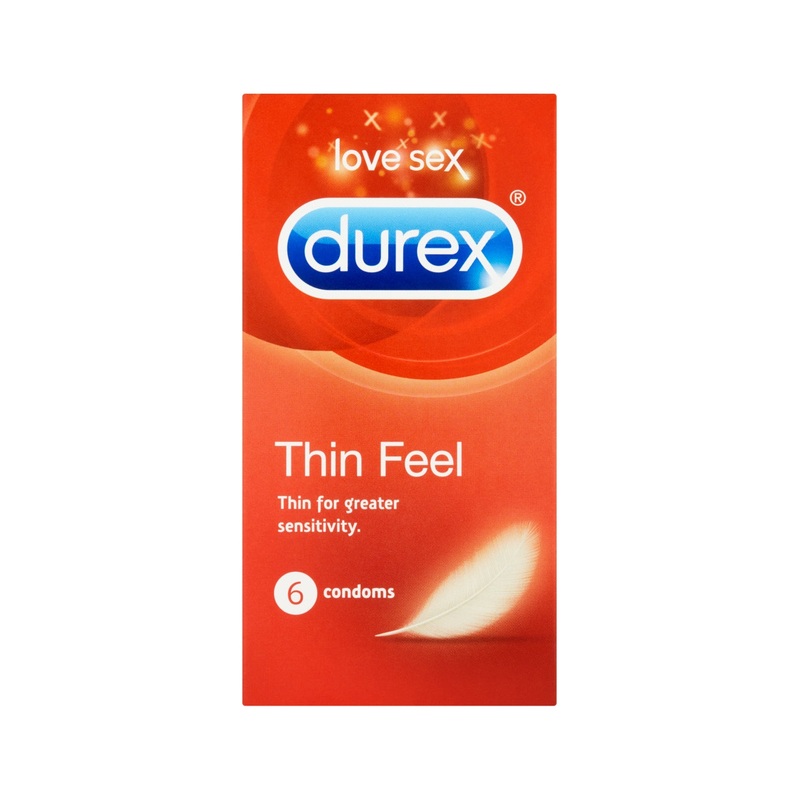 Durex Thin Feel is thinner for greater sensitivityEasy-On shaped and teat ended for comfort and fitTransparent and lubricated natural rubber latex condomsNominal width: 56mm100% electronically tested