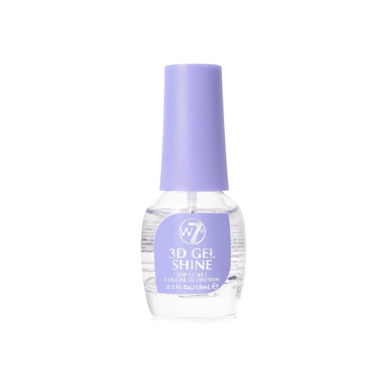 Give your nails the perfect gel-style finish with the W7 3D Gel Shine Top Coat. Infused with Argan Oil, this quick-drying top coat seals your nail color and adds a long-lasting, glossy shine for up to 10 days. It’s easy to apply and wears extremely well, keeping your manicure looking fabulous!