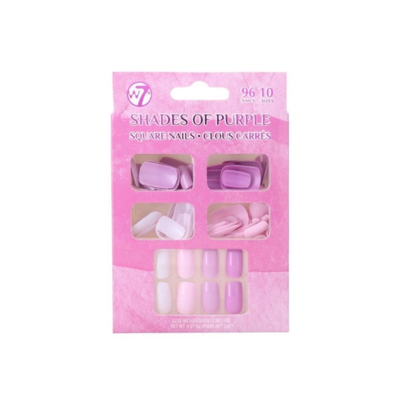 Achieve eye-catching and glamorous nails with W7's Shades Of Purple set! These 96 false nails come in 10 sizes and a range of beautiful nudes, pinks, and purples for you to mix and match and customize your look. Plus, glue is included to help you complete