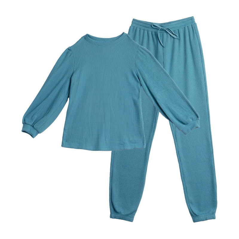 All you need to know:When youve taken off your day clothes but arent yet ready for pyjamas, reach for our comfy yet stylish Waffle Lounge Set instead.Crafted from a cosy knitted fabric in beautiful deep teal, this loungewear set includes a long-sleeve top