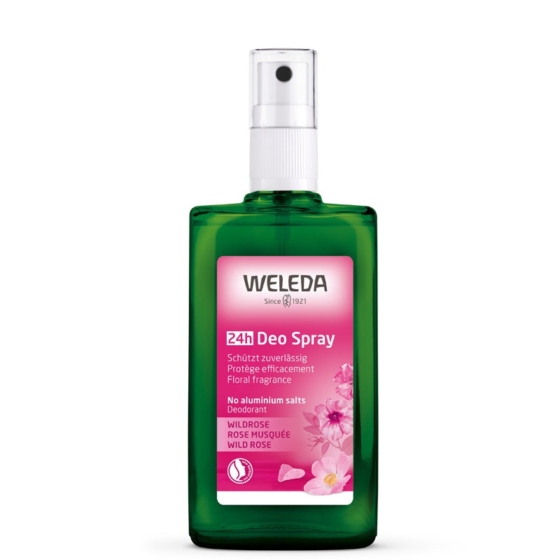 Weleda Wild Rose 24h Deo Sprayhelps counteract unpleasant body odours without clogging pores and inhibiting the important functions of the skin. Pure essential oils of Damask rose and Ylang-ylang create a delicate, floral scent and the bacteria which cause